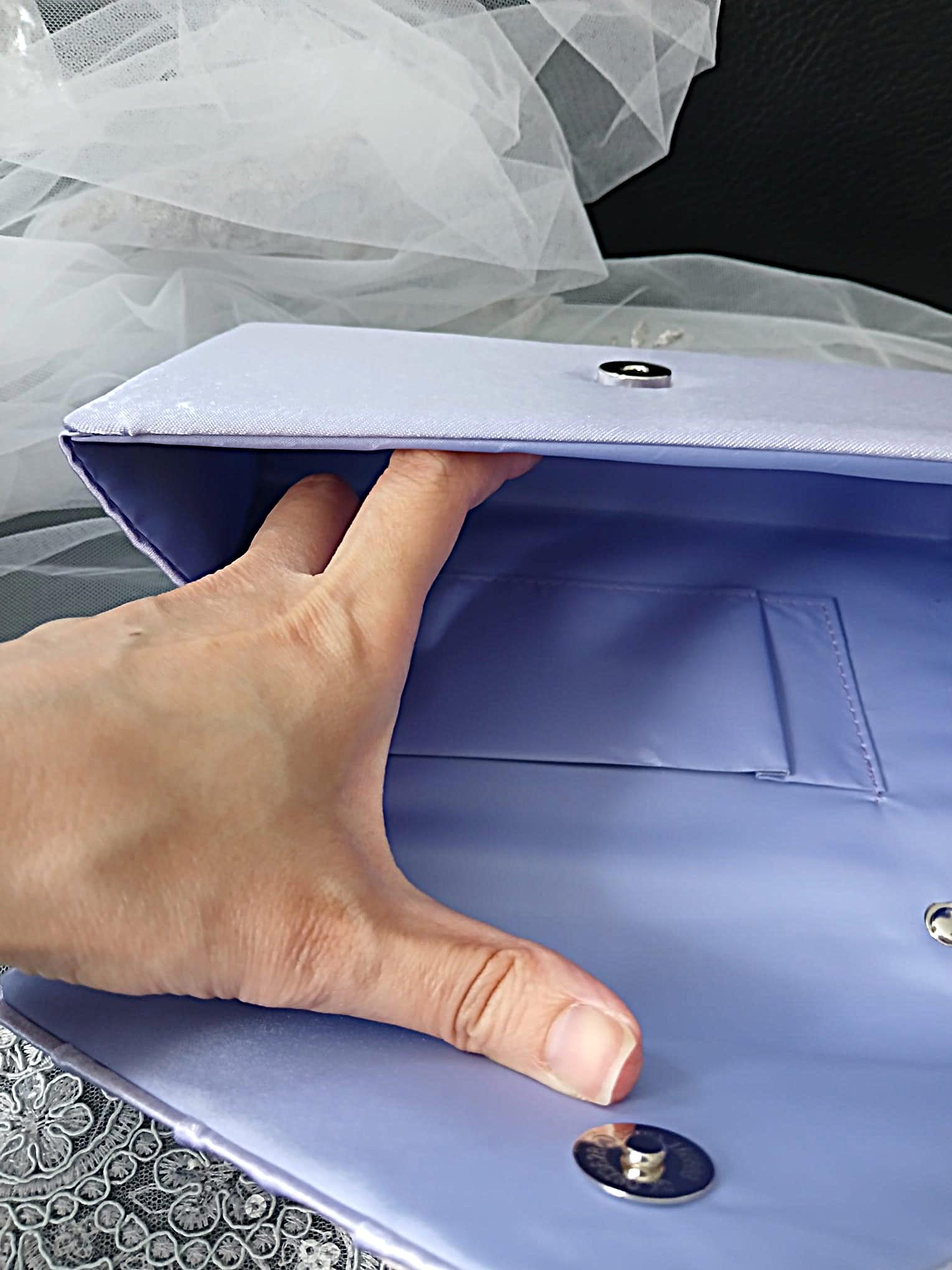 This sage green clutch bag features a classic envelope silhouette with soft pleated detailing across the flap, creating an elegant and refined evening look. The front is accented with delicate floral embroidery and bead embellishments, adding a romantic and feminine touch. With its structured shape and graceful finish, this clutch is a beautiful choice for weddings, banquets, parties, and other special occasions.